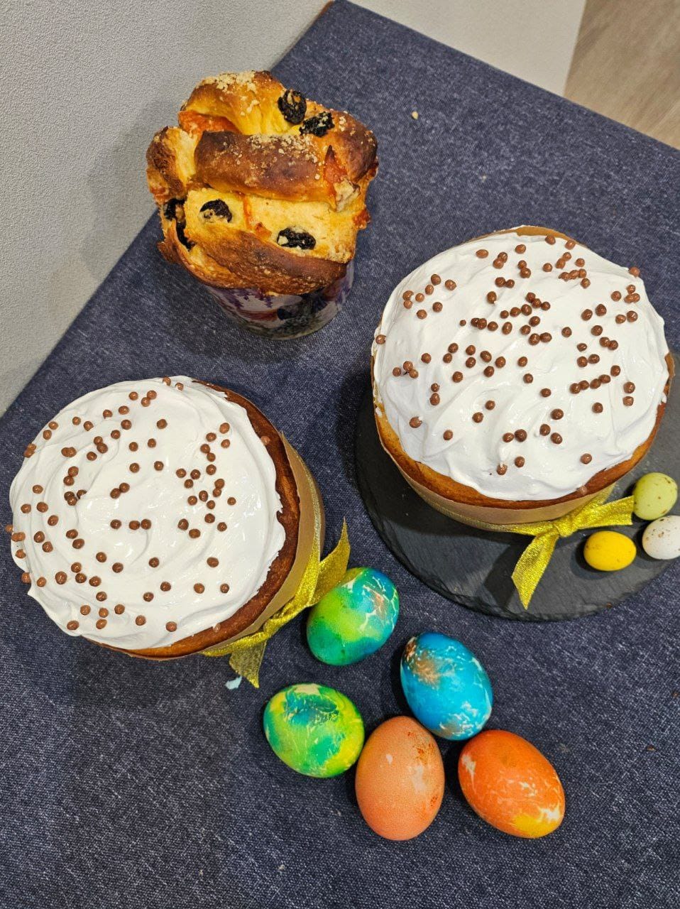 Готовым куличам даём полностью остыть на решётке и только потом украшаем.